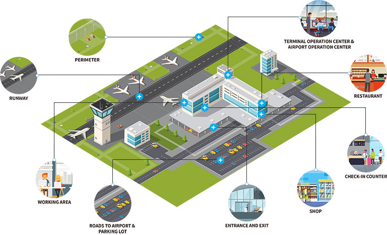 Da Flughäfen zu den Branchen gehören, in denen der Einsatz von Sicherheitssystemen hohe Bedeutung hat, beobachten Flughafenbetreiber die Entwicklung und Anwendung von Sicherheitstechnik sehr aufmerksam. Allerdings stellt der Einsatz von Videoüberwachungssystemen hier eine Herausforderung dar, weil es in Flughafengebäuden eine große Anzahl von Passagieren, Ein- und Ausgängen, Lounges, Korridoren, Check-in-Schaltern und komplexen Szenarien gibt.