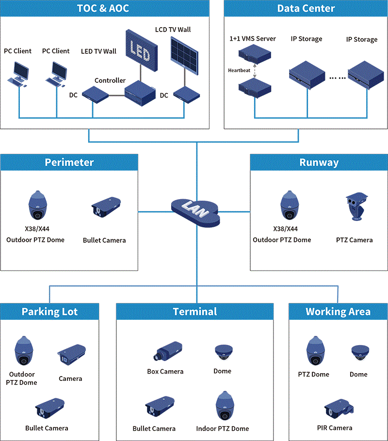 Uniview ist seit Jahren in der Überwachungsbranche tätig und konnte umfangreiche Erfahrung und Kenntnisse mit zahlreichen großen Flughäfen sammeln. Uniview bietet nun eine neue Überwachungslösung für Flughäfen an, die hocheffizient, sehr zuverlässig und in hohem Maße erweiterbar ist. Sie stellt Flughafenbetreibern eine grundlegende Datenbasis für weitere Anwendungen wie z. B. Situationswahrnehmung, Serviceoptimierung und intelligente Analyse bereit und ermöglicht so einen besseren Flughafenbetrieb.