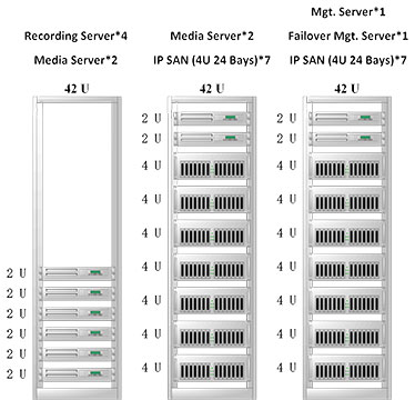 UNV IP storage adopts unique structure allowing 60 bays at a height of 4U with front panel hot swappable. Hence, UNV solution can save more than 60% rack space and using much less power consumption under the same condition.