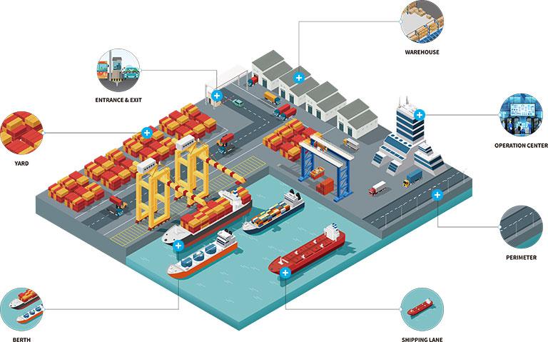 Laut einer Studie werden 80 % des Welthandels auf dem Seeweg abgewickelt. Da ein Seehafen sowohl dem Meer als auch dem Binnenland zugewandte Bereiche umfasst, also zwei völlig unterschiedliche und komplexe Topografien, ist die Sicherheit eines Seehafens mit großen Herausforderungen verbunden. Eine professionelle Videoüberwachung spielt eine wichtige Rolle für die Sicherheit von Seehäfen.