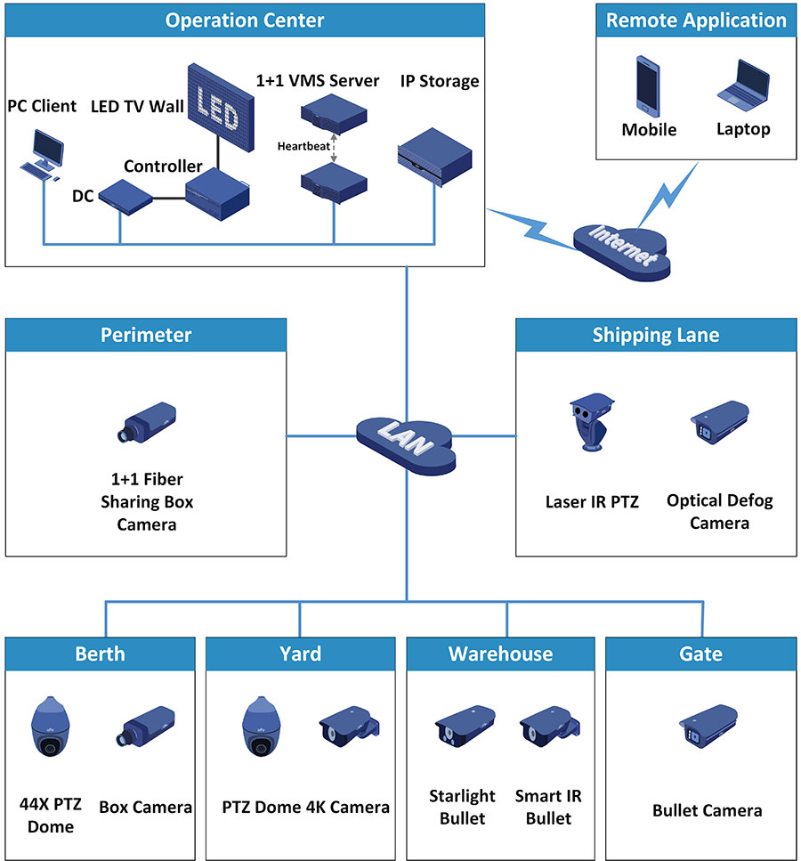 Uniview ist seit Jahren im Bereich Videoüberwachung tätig und verfügt über umfangreiche Erfahrung und Expertise mit unterschiedlichen Seehafenprojekten. Uniview bietet nun eine umfassende Lösung zur Überwachung von Seehäfen an, die für entsprechende Überwachungsprojekte aller Art einsetzbar ist.