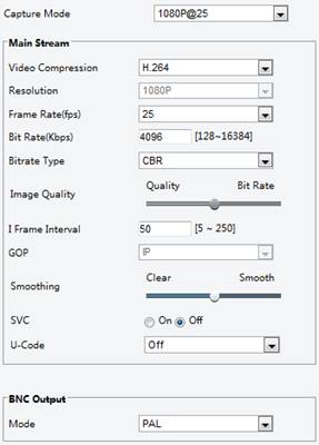 Image setting, image setup, video, video compression, resolution, fps, image quality, I frame, GOP, U-code, Bitrate Type, SVC, BNC