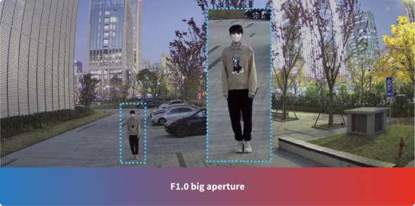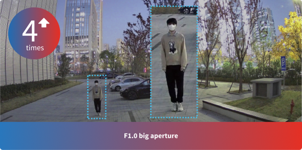 The F1.0 super-large aperture collects four times more light than the F2.0 aperture, delivering image quality that makes night look like day.