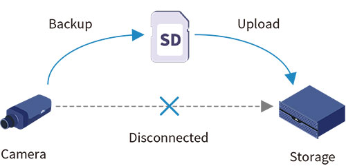 Les caméras d’UNV peuvent automatiquement stocker les enregistrements vidéo dans la carte SD de la caméra lorsque le réseau est déconnecté. Une fois le réseau rétabli, les enregistrements vidéo sont renvoyés au serveur de stockage. Ainsi, tous les enregistrements vidéo sont sauvegardés, même en cas de défaillance temporaire du réseau.