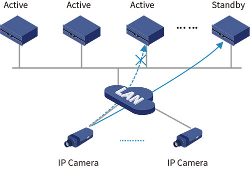 Le SAN IP d’UNV prend en charge la sauvegarde à chaud N+1. En cas de défaillance d’un SAN IP actif, le SAN IP de secours prend automatiquement le relais pour assurer le service.