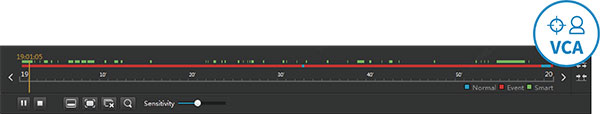 Les fonctions VCA et lecture intelligente prennent en charge la lecture des enregistrements vidéo basés sur différents types d’événements, comme la détection de mouvement, la perte de vidéo, l’entrée d’alarme et ainsi de suite.