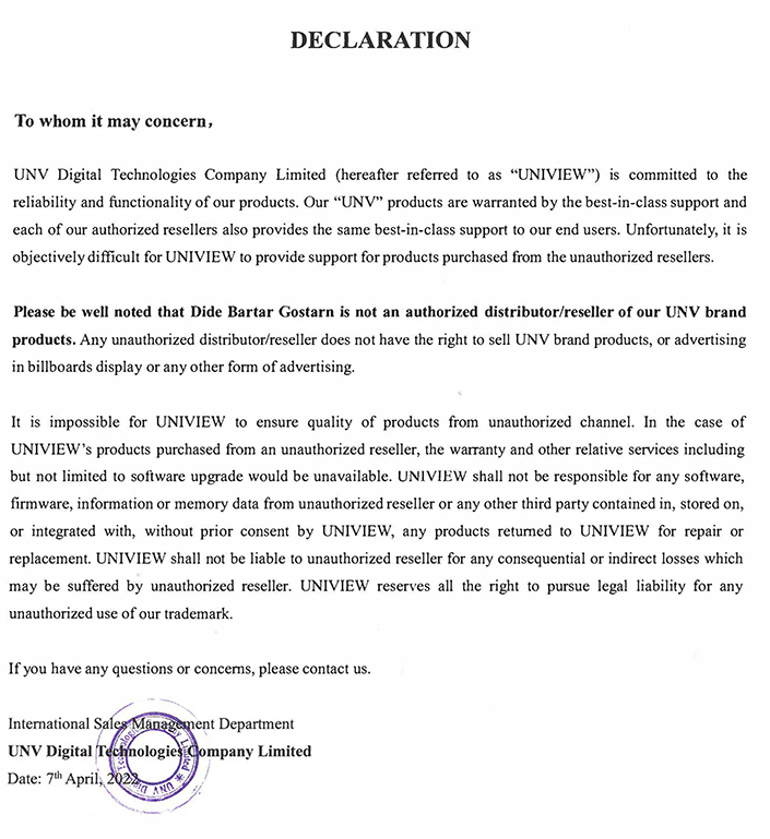 Declaration about Unauthorized Reseller Dide Bartar Gostarn