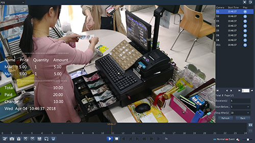 Video images and corresponding POS information can be combined together through integration of POS devices and a UNV NVR. POS information can be recorded and displayed on the corresponding video footages. Also it can be used to check video recordings/events through text search.